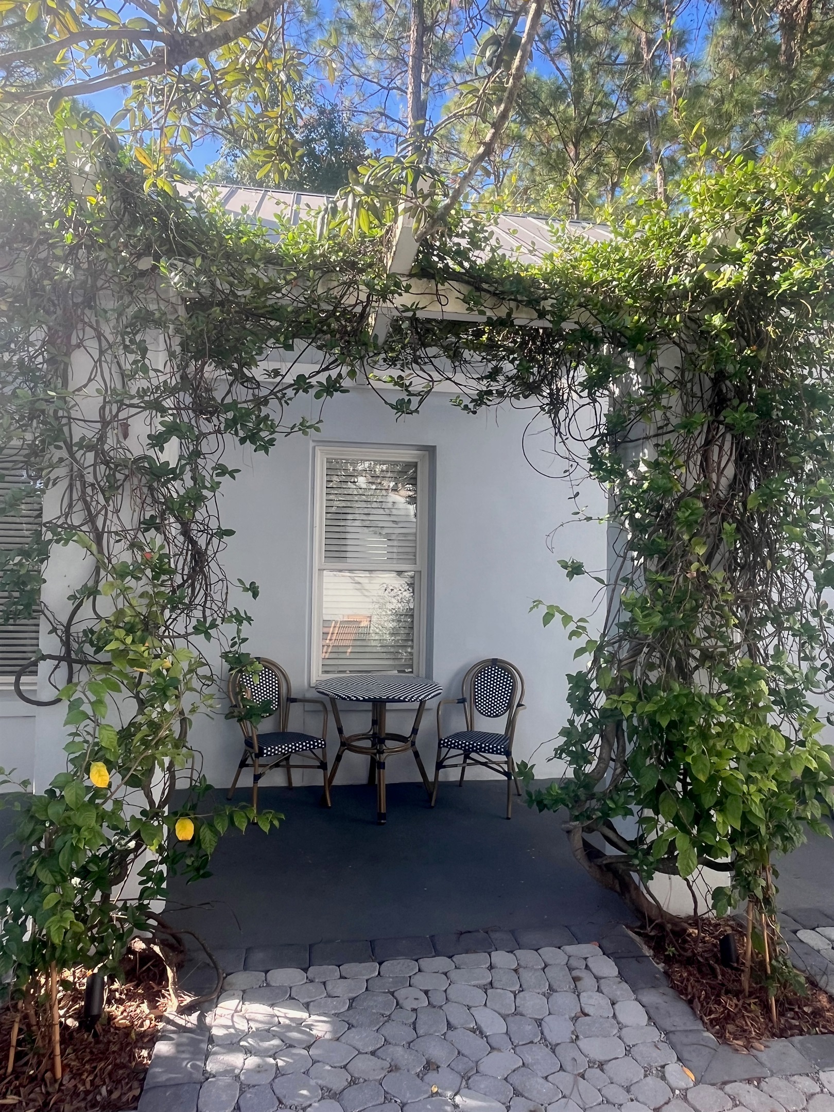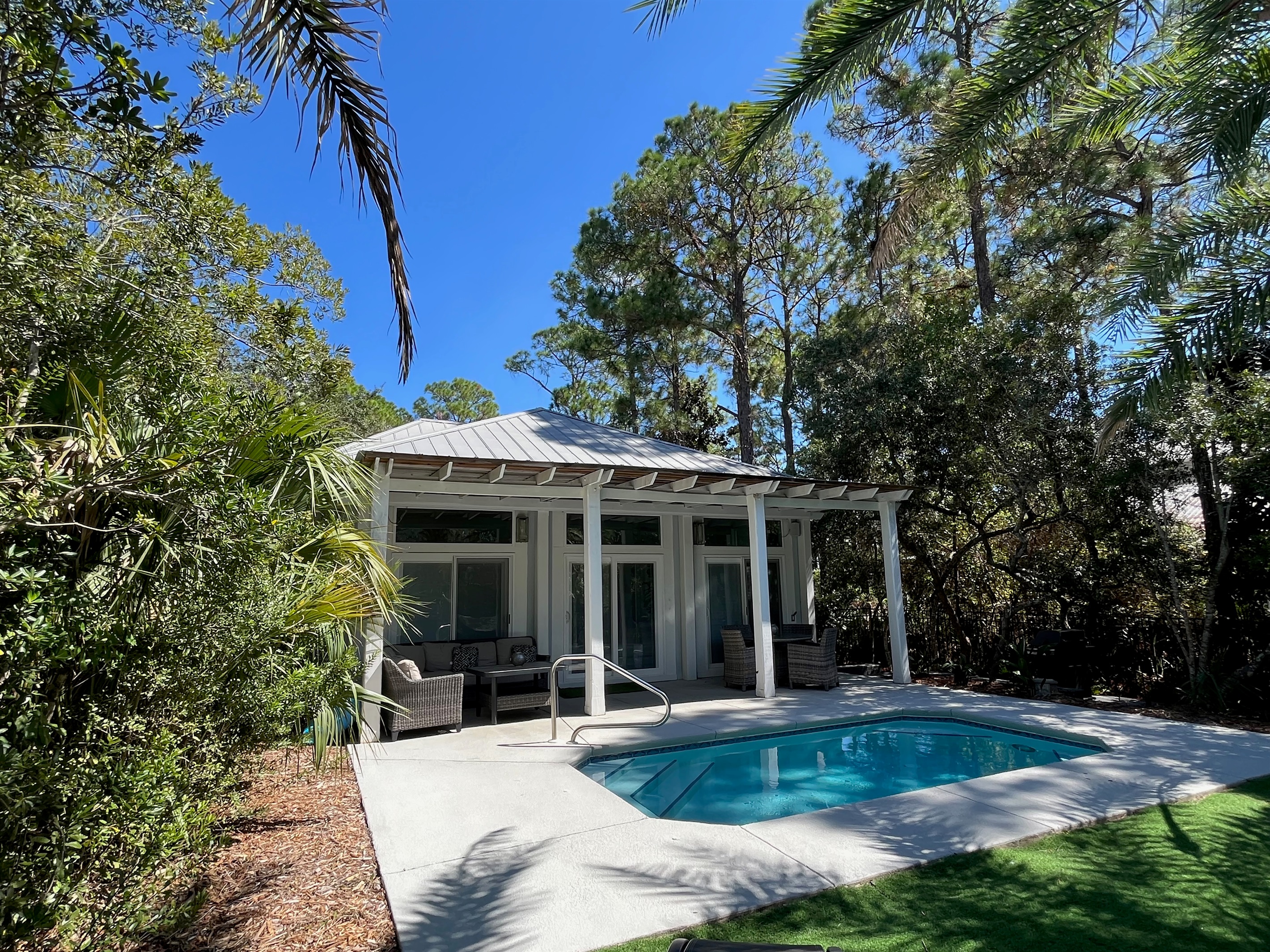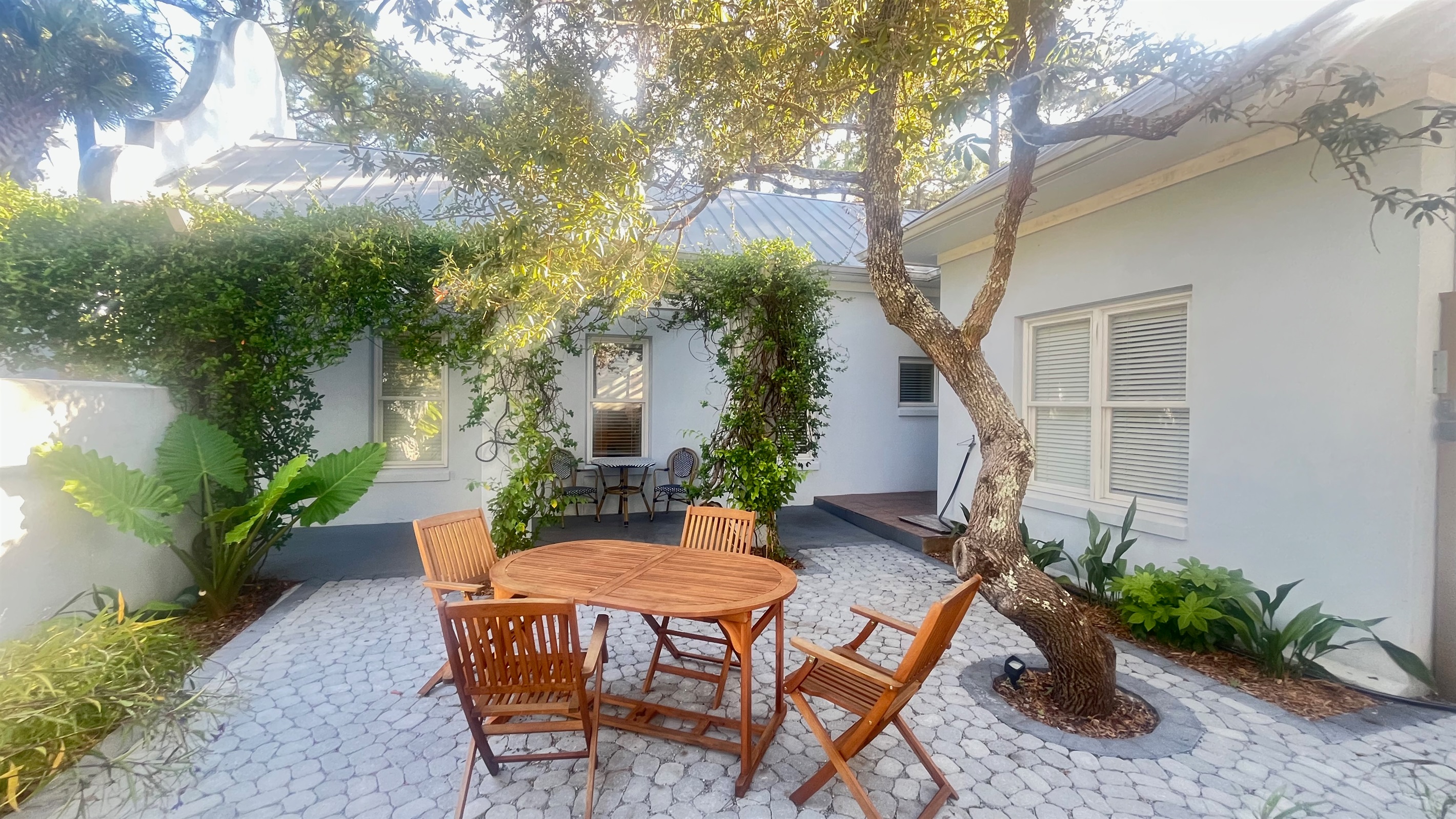 Mediterranean style open, one level layout surrounded by lush tropical vegetation opens to the veranda and pool in the backyard, while the private front courtyard greets and invites guest to slow down and enjoy indoor/outdoor laid back living perfectly suited for those who are looking to reconnect with one another and enjoy the breeze and sounds of the gulf waves in a feeling of privacy rarely found on 30A.