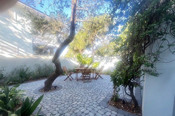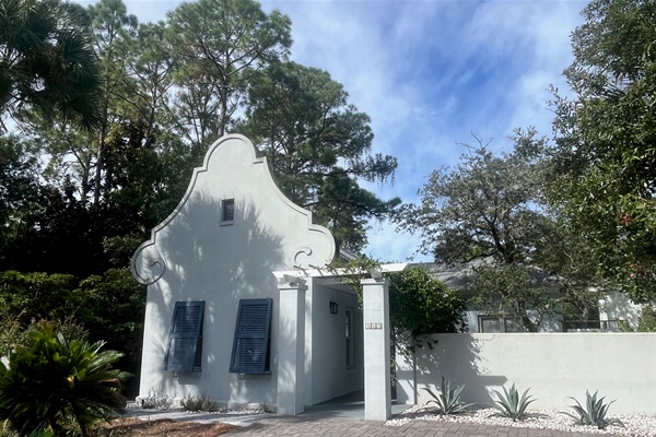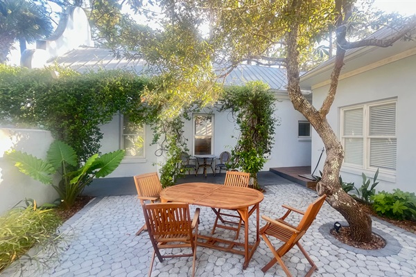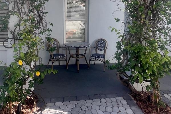 Sheltered, romantic courtyard welcomes visitors to slow down & enjoy their vacation.